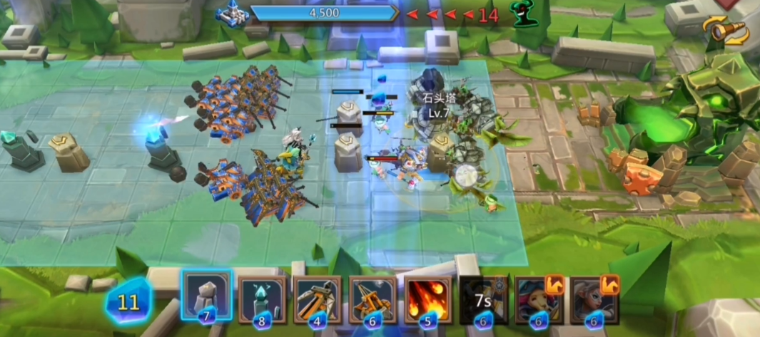 中期阶段要灵活调整战术,如果敌方炮车压力大,可以补1-2个炮车专门针对防御塔。魔像的嘲讽效果能分散小兵仇恨,给防御塔创造输出空间。记得保留至少1个清兵技能应对突发状况,黑炎的持续伤害在兵群密集时效果显著。