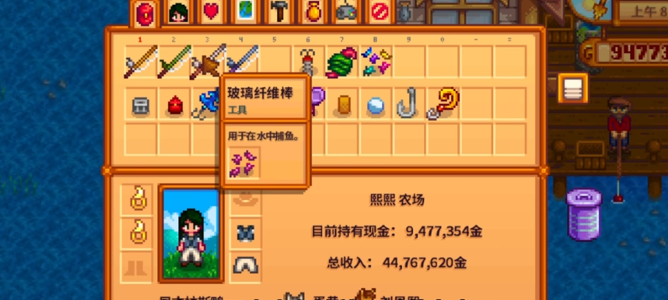 鱼竿的作用不仅仅是钓鱼,它还能帮助咱们收集资源。比如在水边钓鱼时,偶尔会捞到垃圾或海藻,这些看似没用的东西其实能通过回收机变成有用的材料。钓鱼也是赚钱的好方法,尤其是钓到高品质的鱼,卖价会更高。如果咱们想挑战稀有鱼类或者完成社区中心的收集包,鱼竿更是必不可少的工具。