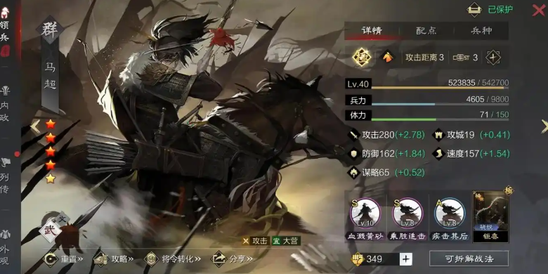 让咱们手里的曹操发挥最大威力,核心在于理解他的定位和核心战法。曹操绝对是咱们的一张王牌,虽然获取难度不低,但用起来效果拔群。他的核心在于自带战法魏武之世,这个战法厉害在能显著削弱敌方全体的攻击、防御、谋略和速度属性,同时让咱们全队的攻击距离增加一格,这一加一减在实战中效果特别突出。曹操本身属性很均衡,尤其是防御能力非常扎实,天生就适合顶在前排吸收伤害,无论是放在前锋还是中军位置,都能扛住压力并为队友创造安全的输出环境,是队伍里不可或缺的强力辅助。
