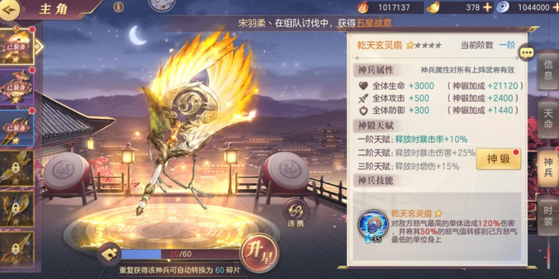 战魂与神兵的搭配也会影响潜能效果。若已配备无双扇子等暴击增益神兵,可适当降低潜能中的暴击属性,转而强化破釜的吸血或弱点穿透。战魂推荐爆裂冲击或怒焰灭袭,前者契合高暴击流派,后者能通过怒攻后的额外伤害补充输出。潜能加点并非固定模板,需根据敌方阵容的防御侧重动态调整。