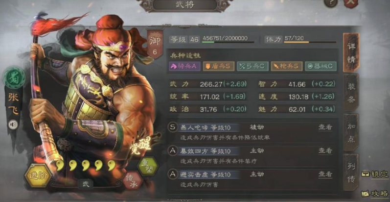 除了武器本身,战法的配合也很关键,裸衣血战和刚勇无前是张飞的核心战法,它们能增强熊烈武器的威力,让张飞在第二和第四回合打出高额伤害。 你搭配这些时,张飞的生存能力也会提升,避免被敌人快速秒杀,整体战斗节奏更流畅。 在蜀枪阵容里,张飞作为主力,武器和战法的选择直接影响队伍强度,比如和关羽、刘备配合,能激活缘分加成,让团队输出更上一层楼。