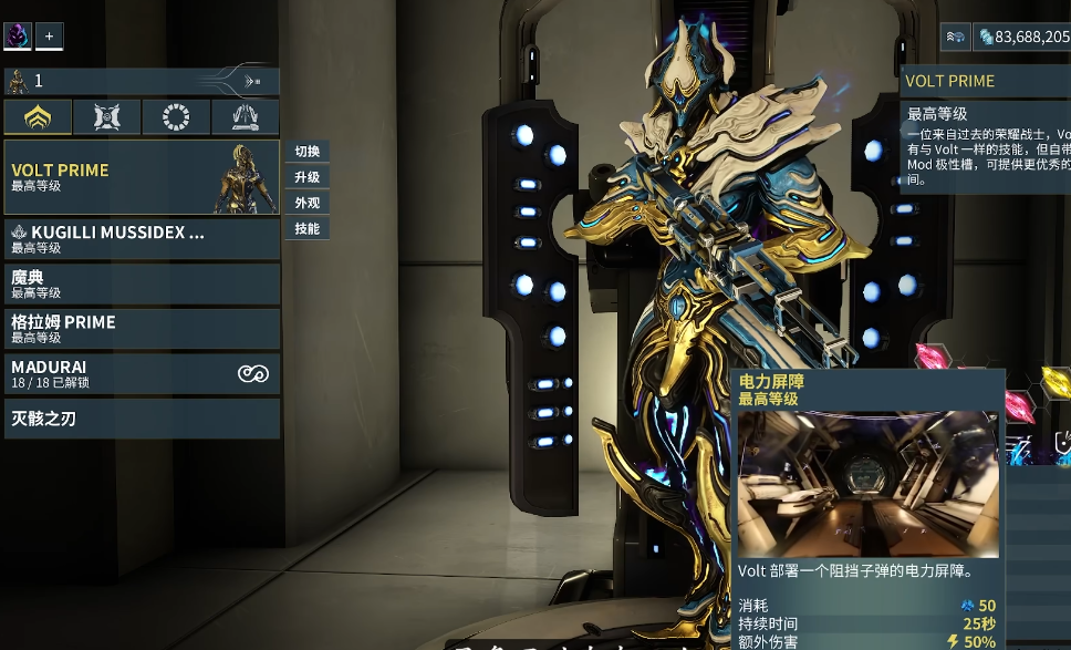 圣装伏特以其出色的机动性和控场能力著称,是前期开图的优质选择。电击技能附带连锁效果,能同时攻击多个目标;加速可提升移动速度,大幅提高任务效率;电力屏障既能提供防护又能增强武器伤害;超负荷则是优秀的范围清场技能。这套战甲适合偏好快速移动和范围打击的玩家,在各类任务中都有稳定表现。
