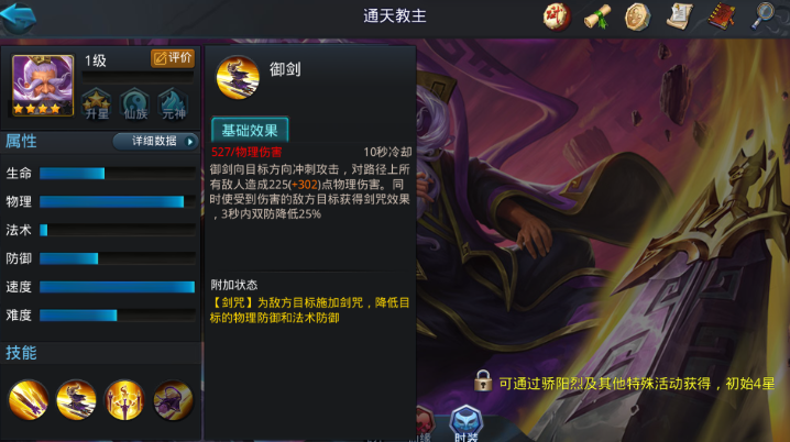 通天教主作为仙族核心英雄之一,其技能机制和战斗定位需要玩家深入理解才能有效应对。该角色拥有高额生命值与法力追加属性,主动技能飞龙霹雳可对线上所有敌人造成法术伤害,魔者神威则能减速敌方全体并限制其行动能力。被动技能神通广大提升自身攻击与法力值