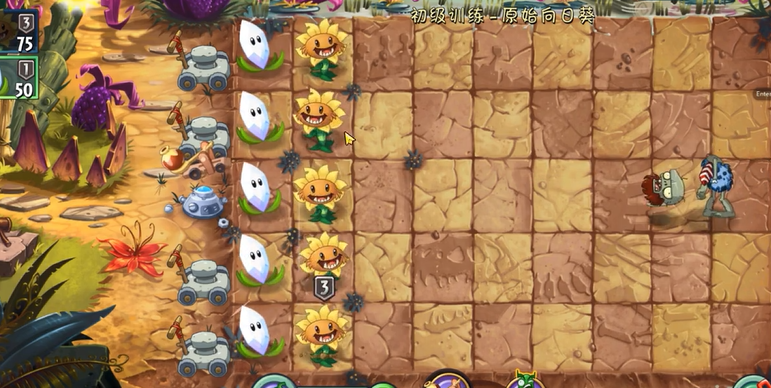 初级训练关卡的核心在于合理布局阳光生产和防御体系。开局必须优先种植向日葵或阳光菇,确保阳光资源持续供应,这是整个关卡的基础。在阳光充足后立即在前排布置豌豆射手等基础攻击植物,形成初步防线。需阳光收集和植物种植的节奏要紧密配合,避免资源浪费或防御空缺。