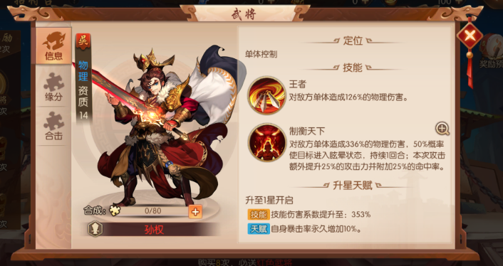 在武将培养上,除了主C吕蒙和孙坚,孙权也是关键角色。他的单体爆发和控制能力很强,尤其是眩晕效果在PVP中非常实用。如果资源有限,建议优先堆满吕蒙和孙坚的星级和装备,孙权的培养可以稍缓。鲁肃和大乔作为功能型武将,不需要投入太多资源,但升星后效果会显著提升,尤其是大乔的治疗量在后期非常关键。