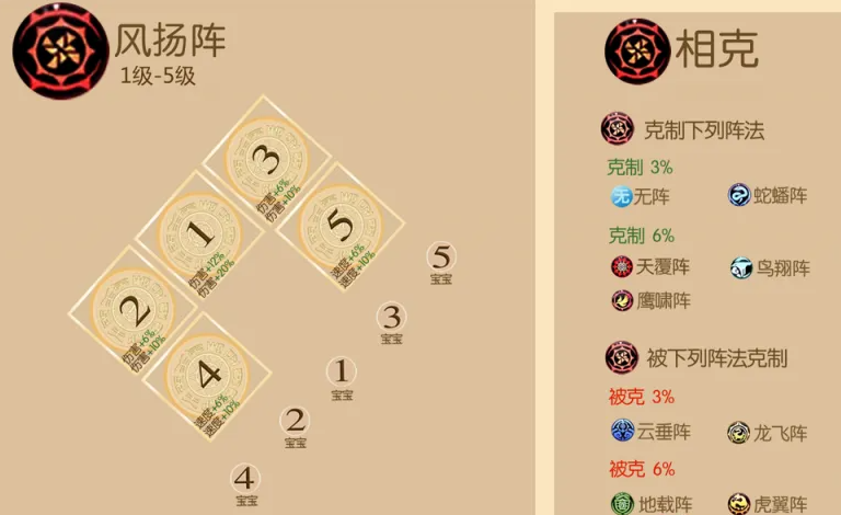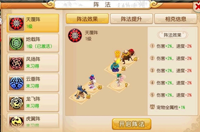 1级阵法仅提供基础加成,而满级5级阵法可额外激活特殊效果,例如天覆阵满级后对鬼魂类目标的伤害提升。建议优先将主力阵法升至3级以上,并通过帮派修炼或阵法书残页持续强化。需注意阵法之间存在克制关系,例如天覆阵被地载阵克制,但捉鬼任务中敌方阵法固定,无需过度考虑克制问题。
