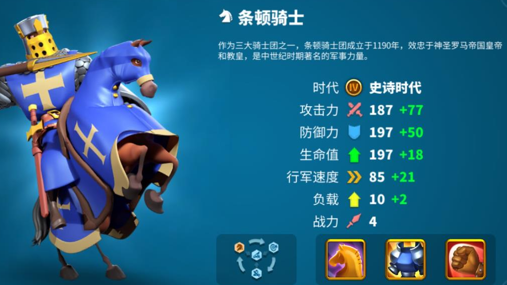 风格兵种是各文明特有的高级作战单位,通常需要达到T4或T5级别才能解锁。不同文明的特色兵种拥有独特的战斗属性和外观,但本质上属于同等级兵种的皮肤变体,其基础属性与普通兵种相同,仅受文明特性的额外加成影响。例式文明的诸葛弩(弓兵)、德意志文明的条顿骑士(骑兵)等,均需通过主城升级至21级(T或25级(T后,在对应兵营中消耗资源训练获得。