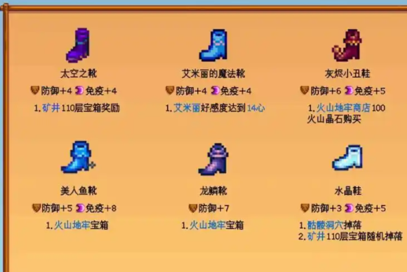 美人鱼靴是后期加入的超强装备,拥有全游戏最高的防御和免疫属性。获取方式相对复杂,需要先解锁姜岛内容。在火山区域的矮人商店可以用火山晶石兑换,每次需要花费100个晶石。平时多收集火山晶石是关键,可以通过炸矿或者打怪来快速积累。