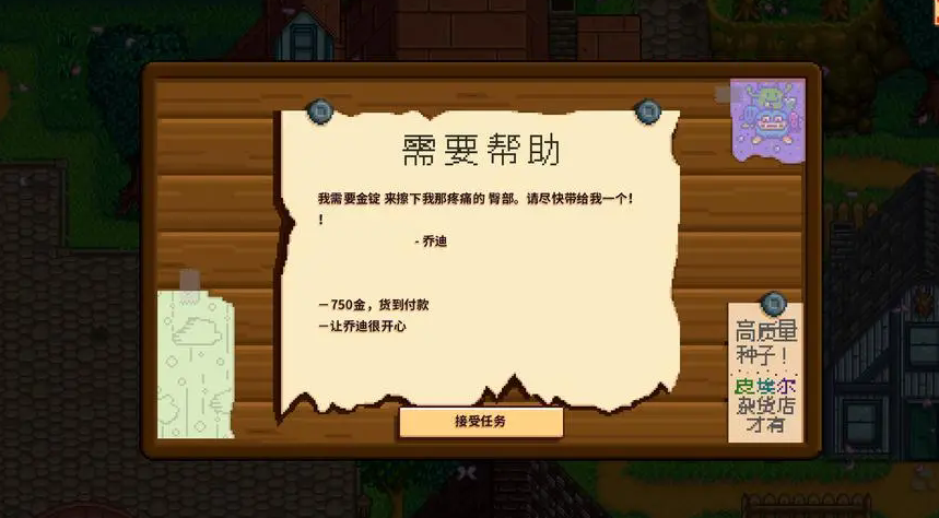 布告栏任务需要提交村民喜爱的礼物和稀有物品。平时多和村民互动,了解他们的喜好,比如阿比盖尔喜欢紫水晶,塞巴斯蒂安喜欢生鱼片。稀有物品可以通过钓鱼宝箱或矿洞挖掘获得。完成布告栏任务能提升村民好感度,解锁更多剧情和奖励。古物可以通过锄地或钓鱼宝箱获得,矿物则需要在矿洞深层挖掘。完成这些任务能解锁祝尼魔赛车等隐藏内容。