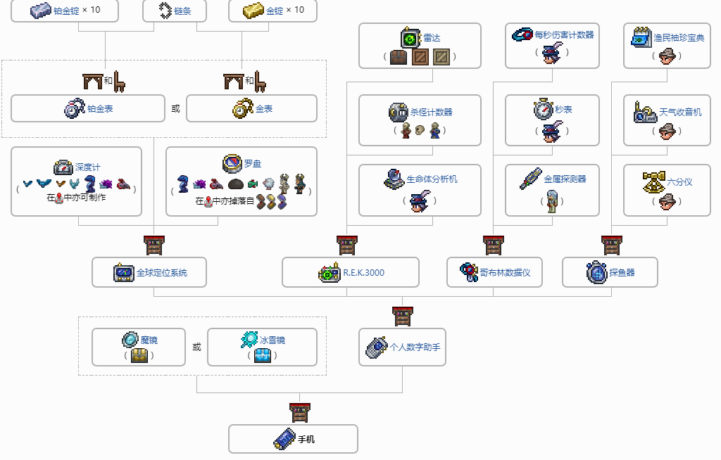 手机是功能性最强的复杂合成品之一,其价值在于整合了罗盘、深度计等六种信息类道具,可节省物品栏空间。其合成依赖渔夫任务的随机奖励(如气象电台)和旅行商人的稀有商品(如秒表),导致玩家需投入大量时间刷取。天顶剑作为终极武器,需整合永夜刃、断钢剑等十把武器,其中波涌之刃和种子弯刀的掉落率分别仅为12%和0.5%,进一步拉长了合成周期。