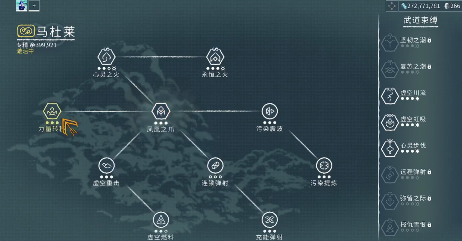 专精学派的选择需围绕马杜莱(M精)与乌奈鲁(U精)展开。马杜莱学派的核心技能虚空突袭提供8倍伤害加成,是破盾阶段的关键输出手段,需优先点满;乌奈鲁学派的幽灵拍击能为队友提供破盾增益,团队协作时收益显著。炽燃冲刺作为马杜莱的次要技能,可稳定触发武勇·暗影的暴击增益,但需注意能量消耗与走位配合。专精配置需平衡输出与功能性,避免过度依赖单一技能导致循环断裂。