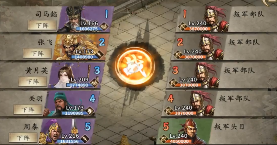 战车和阵法是通关核心,记得把周泰放在最后一排带3车,面对主将时能保留1排90%血量过关。如果咱们有觉醒曹操,可以放在第四排带3车,配合其他武将的雁形阵或云垂阵提升输出。前四排尽量用高攻武将快速清场,比如甘宁带5车雁形阵打头阵,黄月英带2车补充伤害。