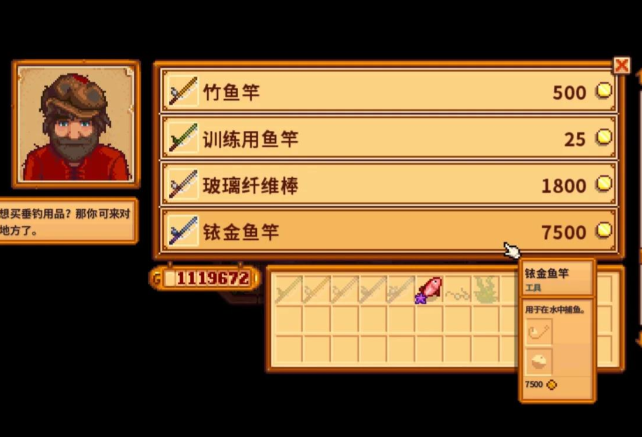 首先明白钓鱼装备分为鱼竿、鱼饵和钓具三部分。鱼竿是基础工具,初始会收到威利送的竹竿,但想要高效钓鱼,建议尽快升级到玻璃纤维鱼竿或铱金鱼竿。玻璃纤维竿在钓鱼等级3级后花1800金购买,能安装鱼饵;铱金竿则需要6级钓鱼技能和7500金,可以同时安装鱼饵和钓具。鱼饵能加快咬钩速度,钓具则能提供各种增益效果,比如减少鱼逃脱概率或增加宝箱掉落率。