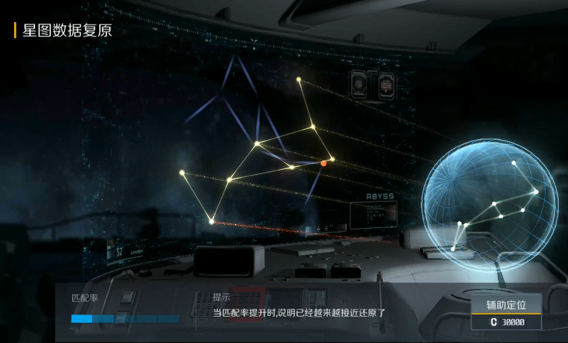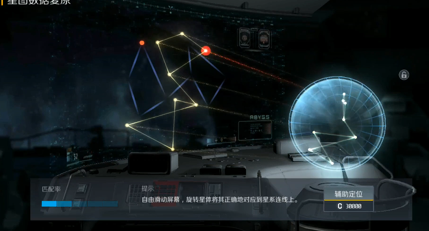 解密过程有点像玩拼图,需要转动天球投影,让星座图案和屏幕上的星图完全匹配。左下角会有进度条提示匹配率,越接近成功进度条就越满。如果觉得手动调整太麻烦,也可以花点信用点让AI帮忙一键破解,省时省力。解密成功后,秘藏的具体位置就会显示在任务列表里,直接导航过去就行。