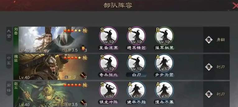 另一种思路是以暴制暴,直接上前三回合爆发的神兵大赏队。流氓队虽然控制厉害,但面对指挥伤害时比较无力。咱们可以组一队带神兵天降和大赏三军的暴力输出,比如吕布、魏延加诸葛亮,前三回合直接碾压。不过要注意避开孙权的规避效果,最好搭配疾击其后这种多段伤害战法。