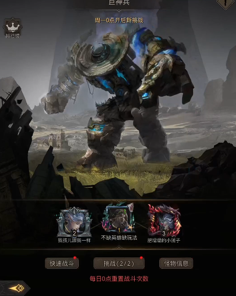 巨神兵55层是游戏中的一个高难度挑战,阵容推荐使用暗影审判(携带布莱彻匕首)作为主输出,搭配狮子(需装备黎明腰带)和暗语(负责致盲控制)。双C位尽量堆叠输出属性,有条件可选择天启头手提升伤害。站位上需确保暗语与狮子处于安全位置,避免被AOE技能波及。食物选择沸血果实,配合燕子技能的99净化效果,既能增强输出又可减少容错压力。装备优先考虑原初套,符文主选狂热副伺机,若资源有限可适当调整。