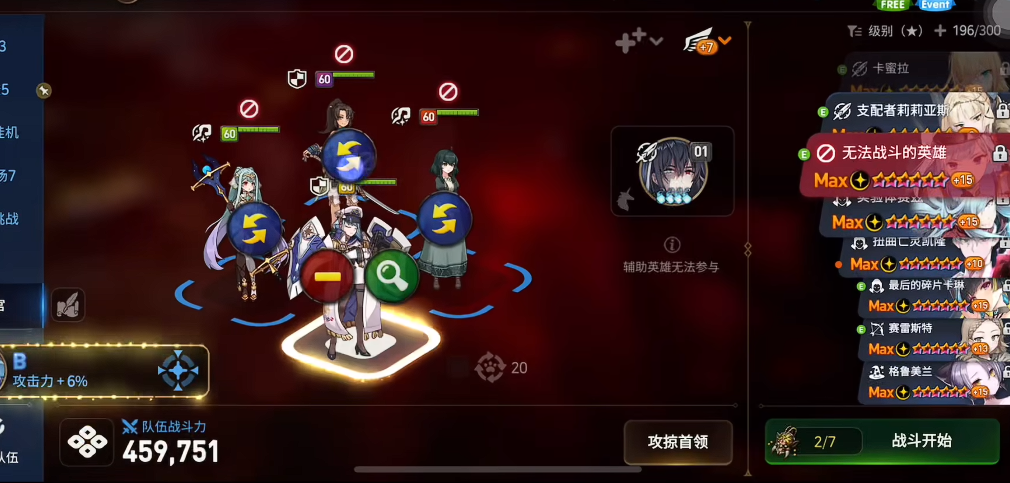 女王的另一个难点是束缚机制,她受到攻击后会锁住后排三个角色,让咱们无法行动。这时候偶像的拉条技能是解控的关键,所以偶像必须站在前排。如果用的是木飞剑,可以让她比偶像快10速左右,这样能先用大招刷新偶像的CD。注意别给女王叠超过3个debuff,否则她会直接开大招秒杀全场,所以神器尽量别带星辰之歌这类容易挂debuff的。