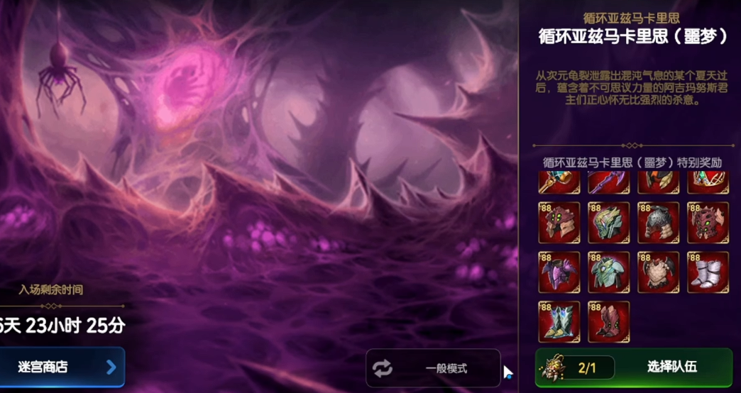 噩梦迷宫作为第七史诗中高难度副本,对角色池深度和装备练度有较高要求。该副本共包含五个不同机制的BOSS,分别为女王阿吉嫚夏洛思、捕食者阿拉哈坎(蜘蛛)、侍从官培拉(蛆)、执行者卡尔卡努司(镰刀虫)和乔里夫议会(蚊子)。每月1日重置后,玩家需消耗两张昆虫咒符进入噩梦模式,且已使用角色无法重复出战,因此需要提前规划至少20名特化角色。