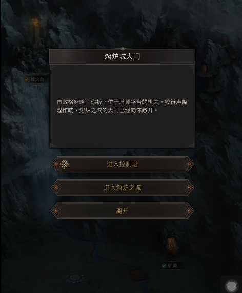 进入熔岩之城需要先完成前置地图熔炉之城的探索,并击败该区域的最终BOSS火巨人。通过先祖之墓的升降梯可抵达熔炉之城,过程中需注意场景中的浓烟和烫伤效果,若携带格雷米德坚冰矿洞的万年冰可清除负面状态,但非强制要求。击败火巨人后,需在熔炉之城完成奥托的挖洞任务,提交紫矿和炸鸡(兽肉、发酵粉、盐合成)以解锁通往暗室的通道,最终触发熔岩之城的入口。