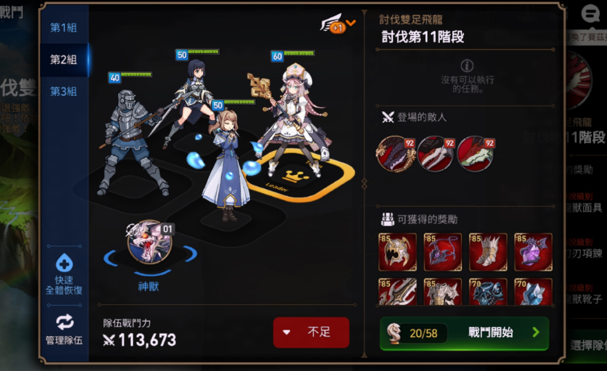 装备配置方面,坦克需要17000左右生命值和1300防御,速度建议160以上确保治疗循环。破甲手需优先堆叠速度和效果命中,主输出则需平衡暴击率和爆伤属性。低练度情况下,可使用主线赠送的75级装备过渡,但建议通过古代遗迹获取88级装备提升稳定性。