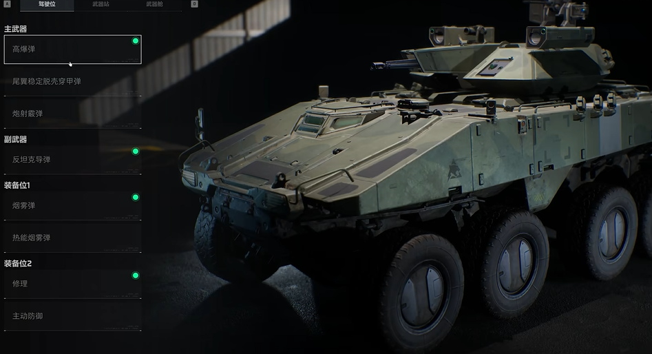 步战车的战力发挥依赖于车内乘员的明确分工,它主要包含三个战斗位和一个乘客位。主驾驶位负责控制车辆的移动,并操控主武器和副武器进行攻击,其副武器通常固定为威力强大的反坦克导弹,专门用于锁定并摧毁敌方地面装甲单位。主武器则是一门25毫米机炮,可以选择高爆弹来有效清理步兵,也可以切换为尾翼稳定脱壳穿甲弹,以更高的穿甲能力在远距离对敌方坦克或飞行载具构成威胁。