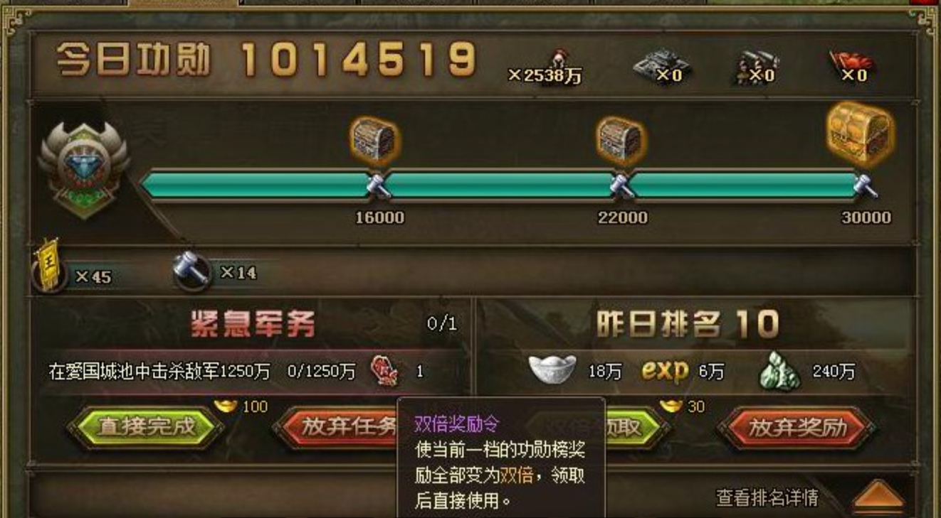 你的核心目标是把功业值攒到300点。只要功业条一满,就能立刻开启宝箱领走里面的兵书和物资奖励啦!可别光盯着中间的主宝箱,活动界面右侧还有额外的轮次宝箱呢。每完成一定轮数的功业积累,就能解锁这些宝箱,里面往往藏着更稀有的好东西,比如特殊宝物。多关注右侧进度,别错过任何一份收获。