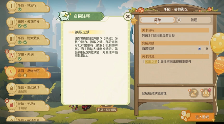 鸣潮换取之梦是2.5版本幻梦游园活动中的一个无尽挑战关卡,其核心玩法在于通过特定的技能组合与运营策略,实现资源的滚雪球式增长,从而轻松应对后期关卡。该模式的关键在于理解换取与递变等技能的联动效果,构建一个能够自动产生高额收益的循环体系。玩家进入关卡后,需要从随机出现的技能中进行选择与搭配,正确的构建思路是通关乃至挑战更高天数的基石。