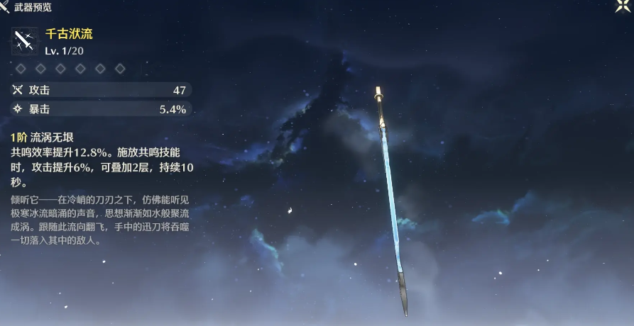 部分常驻五星武器因其出色的基础属性和增益效果,成为了多角色适配的优选。迅刀类型的千古洑流以其提供的暴击率副词条和提升共鸣效率、攻击力的特殊效果,满足了大多数输出角色的需求,被广泛认为是该武器家族中实用性最高的选择之一。佩枪中的停驻之烟也因其暴击率加成和释放延奏技能后提升攻击力的效果,成为了许多佩枪角色的可靠选择,无论是主C还是副C定位都能从中获益。这些武器的优势在于它们不苛刻的触发条件与稳定的增益,能为尚未获取专属武器或处于资源积累期的玩家提供强大的战力支撑。