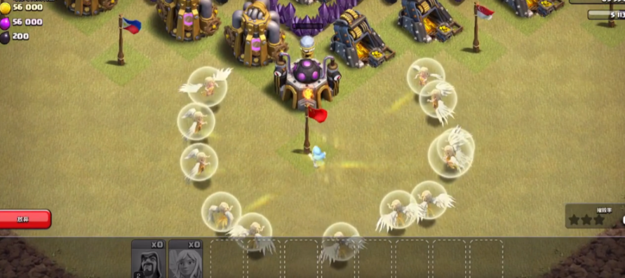 部落城堡中的援兵应放在阵型中心避免被轻易引出,配置法师、女武神或龙宝等防守强的单位。英雄如野蛮人之王要部署在关键防御点配合陷阱反击,针对天使搭配女皇的进攻,需集中火力攻击女皇并使用单目标地狱塔集火。毒药法术或冰冻法术能延缓天使的治疗速度,让女皇在治疗中断时被击倒。