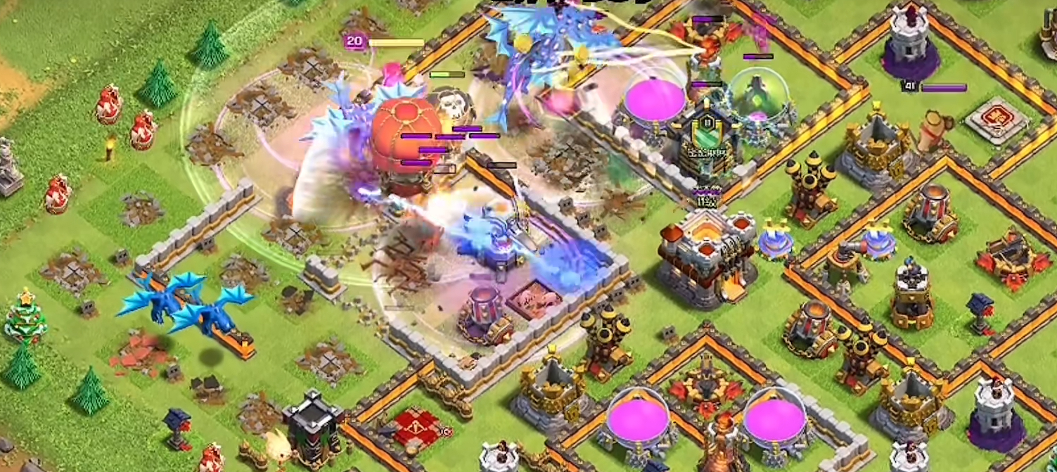 整个进攻过程中,需要密切关注雷龙的走位和状态。空气炮(飓风陷阱)会严重打乱雷龙的进攻节奏,必须用冰冻法术及时应对。当地狱塔为多头模式时,其威胁相对较小,可考虑使用疗伤法术维持雷龙血线。牢记雷龙的链式伤害只能传导到相邻2格内的建筑,因此要确保进攻方向上的防御建筑能被有效覆盖。避免雷龙被敌方英雄或援军吸引而偏离主攻方向,通过前戏和清边来规避此风险。在狂暴法术的加持下,雷龙将依靠强大的范围伤害摧毁剩余建筑,从而收获三星胜利。