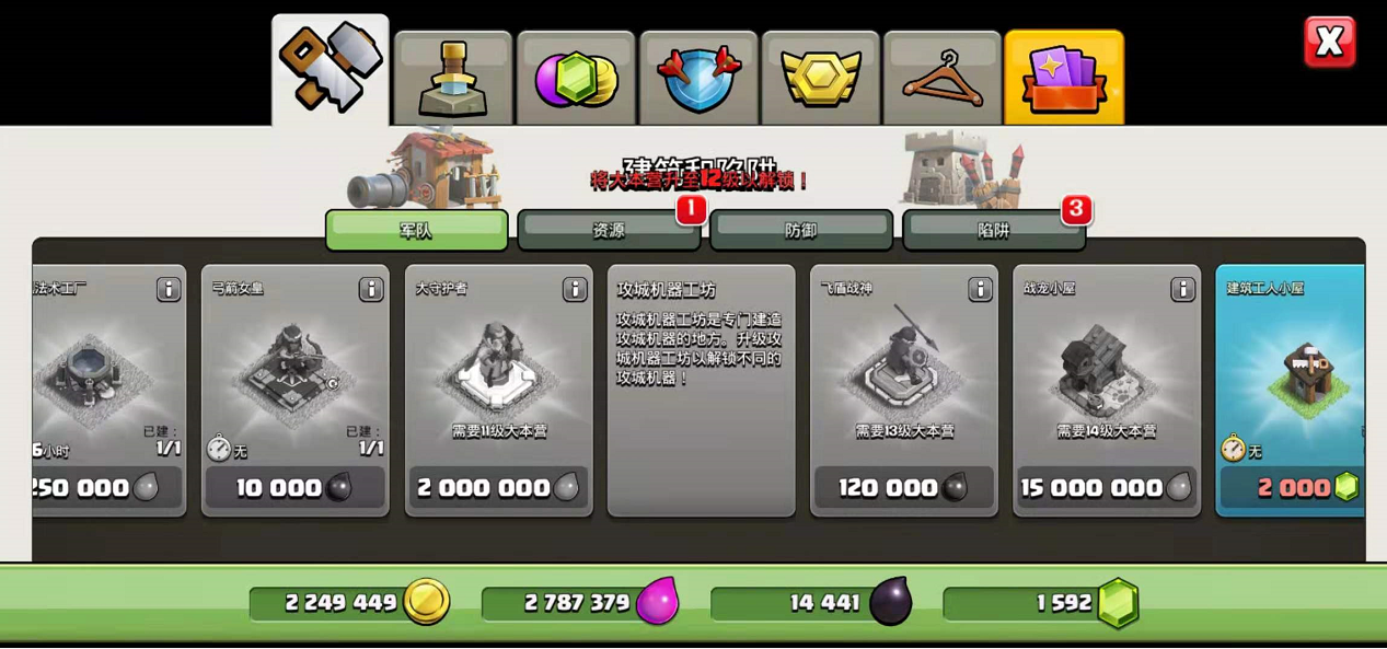 工程通常指代攻城机器,它们是强大的辅助进攻单位,需要通过升级大本营和攻城机器工坊来解锁和制造。玩家的大本营等级需要达到相应要求(例如13本),并且攻城机器工坊达到指定等级(如4级)后,即可花费圣水等资源来修建攻城训练营等攻城机器。解锁后,你可以在进攻时从部落城堡请求包含攻城机器的援军,也可以在自己的攻城机器工坊中建造,并在战前部署到你的军队配置中。