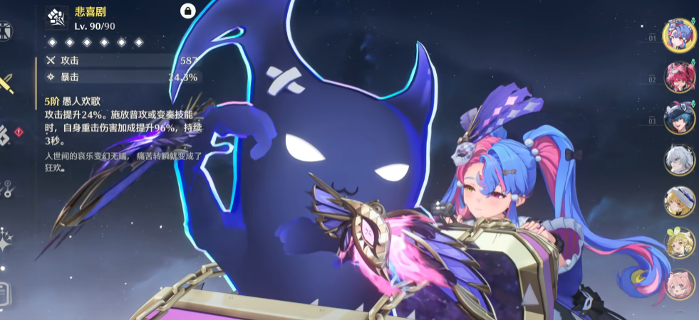 若决定培养,需关注其核心养成要点。武器方面,专武悲喜剧因其提供珍贵的暴击率属性成为首选;其他五星拳套如诸方玄枢或擎渊怒涛可作为次选,但需注意弥补暴击。洛可可对暴击率有较高要求,通常需要堆叠至70%以触发天赋的全队攻击力加成上限。声骸搭配上,常见选择为43311或44111的组合,主词条优先确保暴击率达标,其次追求暴击伤害、攻击力与共鸣效率。套装选择则需根据命座决定,零命情况下轻云出月套装对队伍的辅助提升通常优于幽夜隐匿之帷套装,高命追求自身输出则可选用后者。