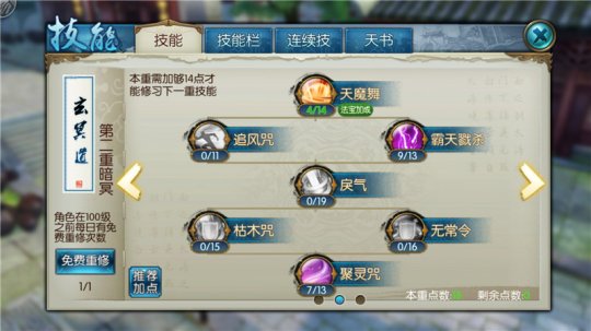 百花缭乱是云梦副本的核心输出技能,必须点满携带,技能可对目标及周围3码内敌人造成5段高额攻击,第一击命中后还能提升自身暴击率,无论是清理成群小怪还是对BOSS爆发输出都极为强力,搭配天书加成后,暴击率与伤害上限会进一步提升,是输出循环的绝对核心。彩云追月集位移与输出为一体,满级伤害倍率高,两段攻击叠加天书加成后总伤害可观,副本中可利用瞬移特性灵活穿梭战场,既能快速贴近目标输出,又能及时躲避BOSS的范围攻击技能,兼顾输出与生存能力,同样需要加满。木灵缚作为关键控制技能,满级可牵引前方8码内目标至身前,附加魅惑与减速效果,还能降低目标躲闪,既能聚集分散小怪方便团队群攻清理,又能打断BOSS关键技能释放,稳定副本战斗节奏。