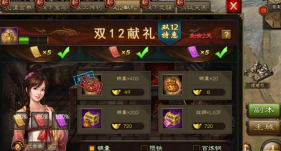 日常玩法需聚焦高收益副本与活动,每日完成神兵副本、晶石副本、战车试炼、觉醒副本四大核心副本,参与国战、矿战、跨服远征获取核心养成材料,功勋商店优先兑换神兵、晶石、战车高阶材料,闲置资源及时投入核心养成系统,避免资源浪费。210级后战力提升需循序渐进,优先攻克核心养成瓶颈,同步优化武将阵容与战术搭配,稳步突破副本关卡与跨服挑战,持续强化整体战力。