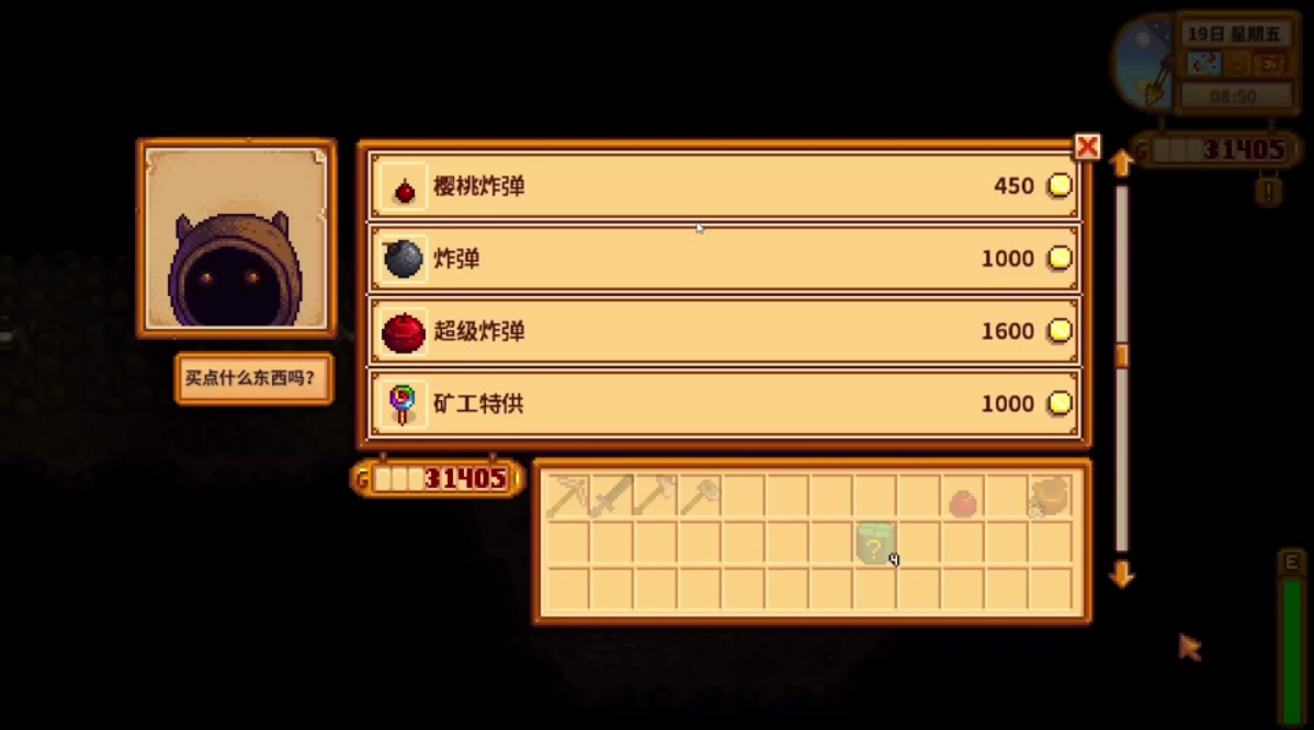 提升效率的关键在于合理利用游戏机制。每天出门前记得查看电视占卜,运气好的日子下矿成功率更高。建议带上足够的食物和炸弹,炸弹能快速清理矿点节省时间。如果遇到怪物层,可以反复刷这一层,因为怪物层固定不刷新。矿井电梯直达的5、15、25层等也是不错的刷矿点,但效率不如深层。