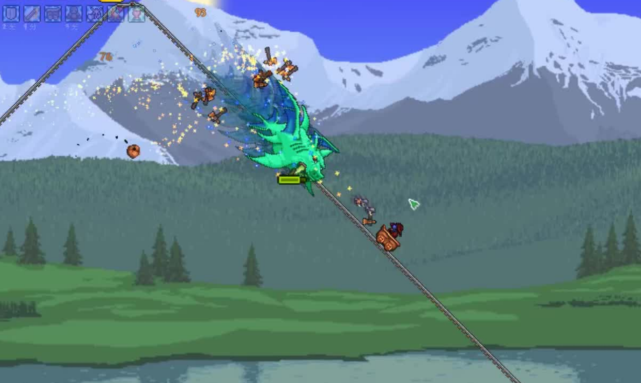 猪鲨菱形轨道是泰拉瑞亚中用于对抗猪鲨公爵的高效战斗场地,其核心原理是利用轨道循环机制让玩家保持高速移动,同时迫使猪鲨进入固定攻击模式。制作这种轨道需要准备300个以上的普通轨道和少量加速轨道,最佳尺寸为17格边长的菱形结构。轨道材料可通过铁锭和木材在铁砧处合成,而机械矿车则需要击败机械三王获取碎片制作。