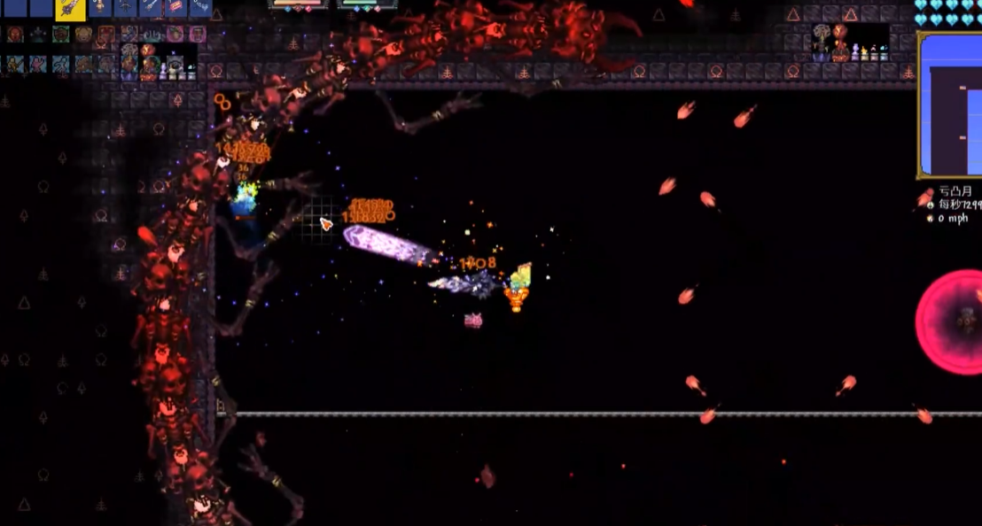 在收集材料的过程中,建议优先击败机械骷髅王以获取恐惧之魂,因其战斗机制相对固定,适合针对性练习。双子魔眼的战斗难度较高,需注意躲避其第二阶段的高速冲撞攻击。枯萎晶状体的获取较为简单,但腐化或猩红地形的敌怪生成速度较快,建议携带战争药剂和水蜡烛以增加刷怪效率。合成完成后,灵魂之锋可进一步强化为更高级别的武器,但需额外材料支持。