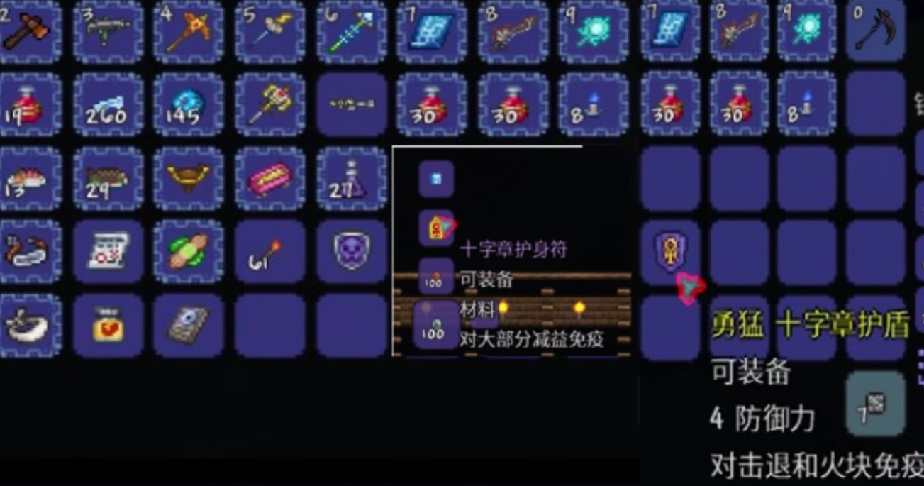 从实用价值来看,诅咒之眼的主要意义在于其掉落物。邪眼作为困难模式前就能获取的稀有材料,是制作高级免疫饰品的关键部件。装备邪眼或由其合成的反诅咒咒语、十字章护盾后,玩家可以免疫包括诅咒在内的多种减益效果。这种免疫能力在面对部分BOSS或特殊环境时具有重要战略价值,特别是在对抗施加诅咒减益的敌怪时能显著提升生存能力。