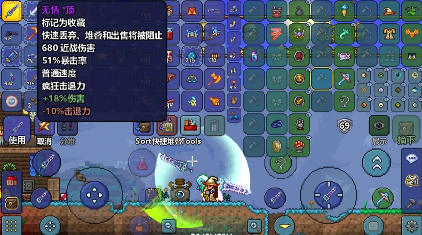 除了附魔剑和泰拉魔刃,剑冢里还有极小概率掉落另一把稀有武器Arkhalis剑。这把剑攻速极快,挥舞时会留下炫目的光效,虽然伤害略低,但手感非常流畅。如果连续找到多个剑冢却没出想要的武器,别着急,多探索几个世界总能碰上。拿到这些武器后记得试试不同的战斗风格。附魔剑适合中距离拉扯,泰拉魔刃适合爆发输出,而Arkhalis剑则擅长贴身速攻。