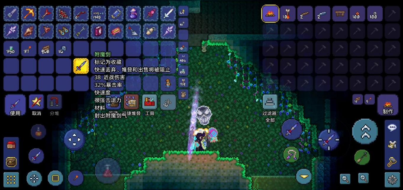 在剑冢里最让人期待的就是附魔剑和泰拉魔刃这两把强力武器了。附魔剑是一把能自动挥舞的近战武器,挥动时会发射出剑气,不消耗任何魔力或弹药,特别适合前期开荒使用。而泰拉魔刃则更加稀有,攻击时会释放出华丽的能量波,伤害和视觉效果都非常出色。这两把剑都能让你在战斗中获得巨大优势。