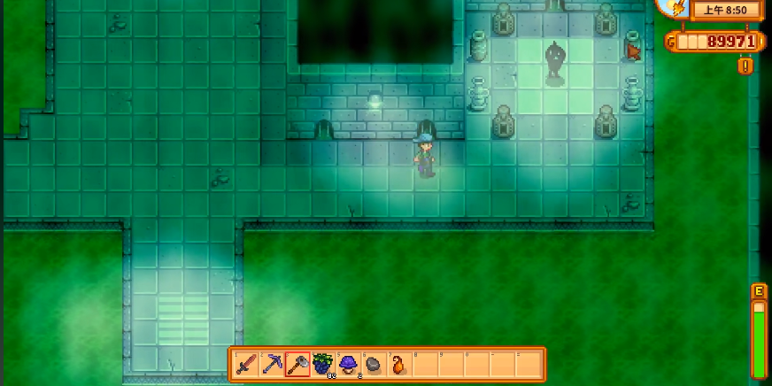 如果还想继续深入法师的剧情,比如解锁黑暗护符任务,就得先完成社区中心的献祭或者走joja路线。之后去罗宾家上方的铁路触发剧情,会发现一个洞口,但需要黑暗护符才能进入。这时候得去下水道找小黑,他会告诉你护符在左边的突变虫穴最深处。拿到护符后进入洞口的小屋,左手边桌子上有药水,喝下后站到右手边的法阵上,就能传送到法师家的地下室,解锁更多建筑选项。