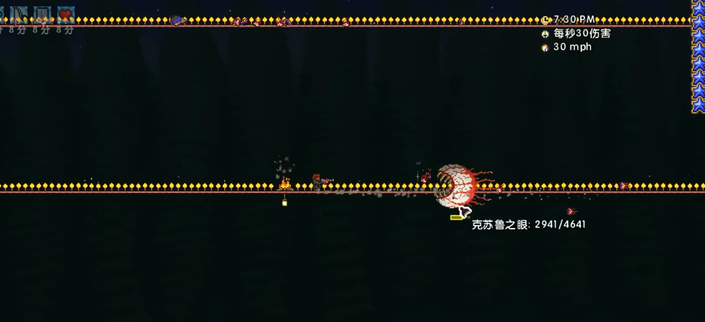当你有了不错的装备,比如金盔甲或者铂金套装,就可以考虑挑战第一个BOSS了。克苏鲁之眼是个不错的选择,晚上用可疑眼球召唤它,打败后能拿到有用的材料。打BOSS前记得造个战斗平台,用木头搭几层,方便走位和躲避攻击。如果觉得难度太高,可以多做点药水,比如铁皮药水能加防御,再生药水能回血,这些小准备会让战斗轻松很多。