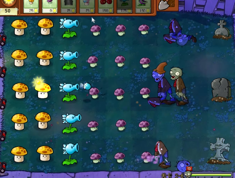 中期僵尸批量刷新阶段,重点紧盯蓝色造冰雪橇僵尸,出现第一时间就用爆发植物解决,杜绝新冰道蔓延扩散,阳光充足之后在水路荷叶上种植豌豆射手、寒冰射手,寒冰射手的减速效果可以大幅减缓僵尸推进速度,减轻前排地刺防守压力,遇到扎堆密集冰车僵尸就用辣椒横向清场,防线出现缺口立刻用樱桃炸弹、窝瓜补位救场,南瓜头可以套在地刺外侧保护防御植物,延长阵地存活时间。游玩过程中时刻观察地刺损耗状态,被雪橇车摧毁之后第一时间补齐种植,保持前排防线完整度,水路不用过度防守,少量输出植物就能解决水面僵尸,后期整体阵型成型之后,只需要循环补全损耗植物、应急处理漏网僵尸,全程守住路线就能平稳撑到通关收尾。